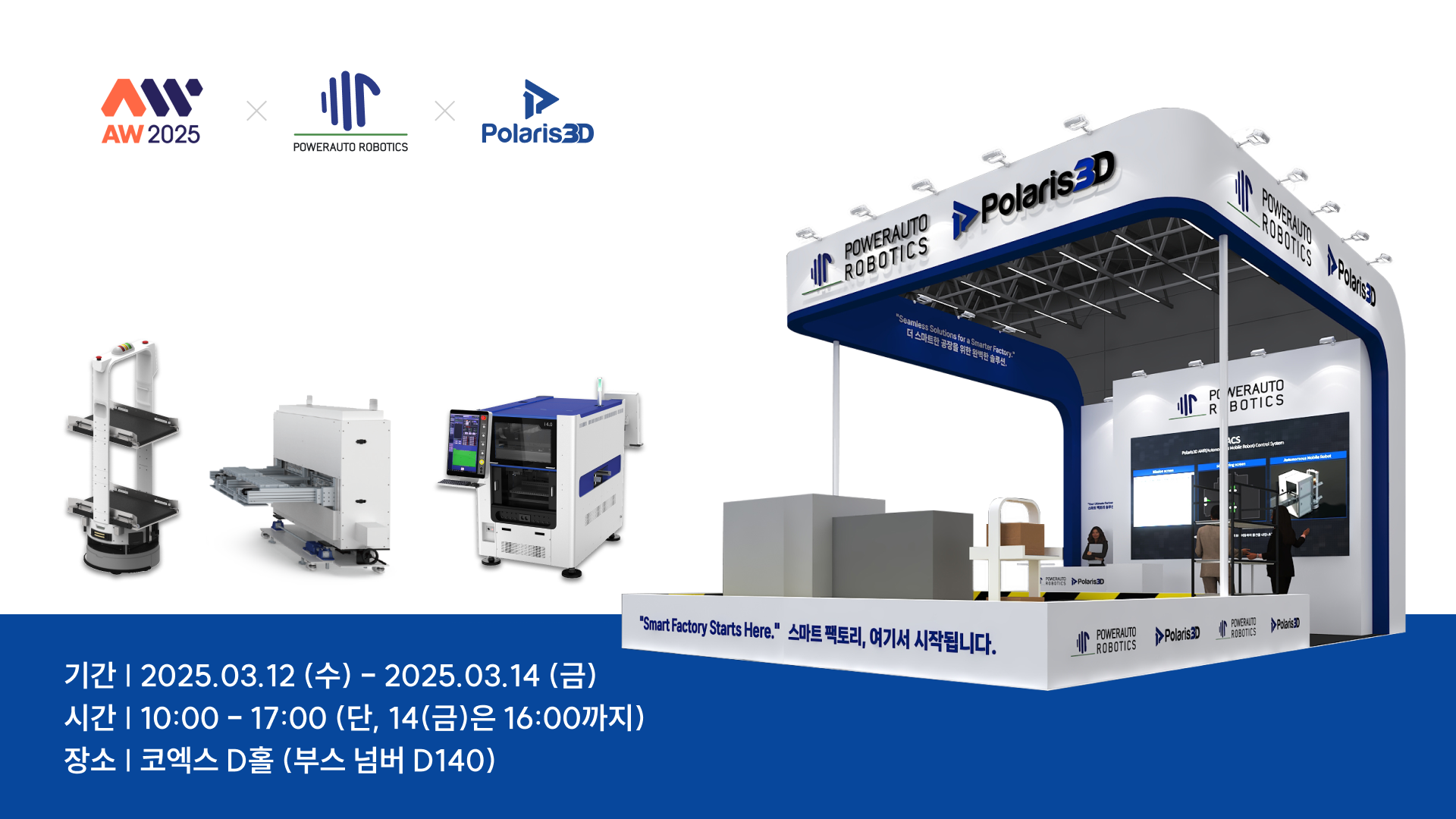 2025년 3월 AW2025에서 처음으로 AMR을 통한 물류 이송 자동화를 선보였던 폴라리스쓰리디가 2026년 3월 4일부터 6일까지 진행되는 AW2026에서 새로운 버전의 AMR을 선보일 예정입니다.